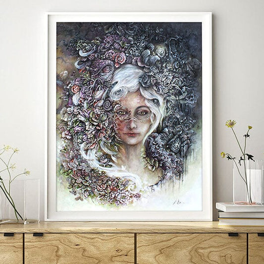 Steampunk Art Print of Gothic Mushrooms and Hands