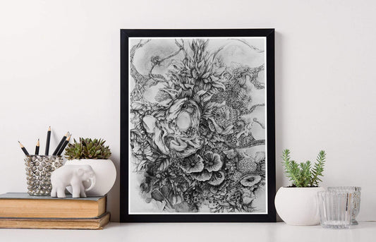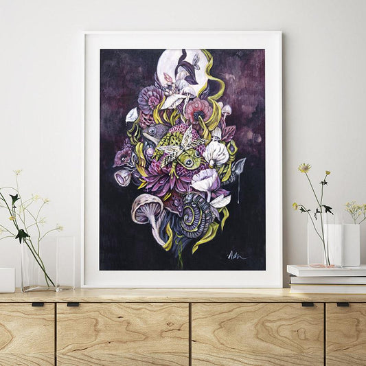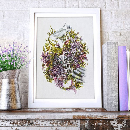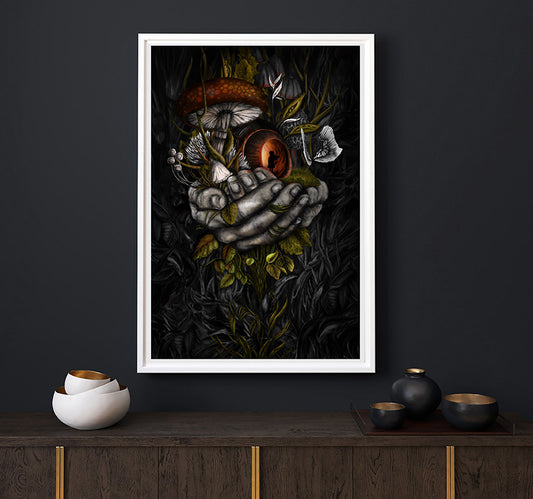 Steampunk Art Print of Gothic Mushrooms and Hands