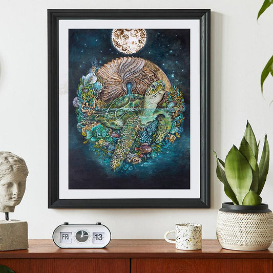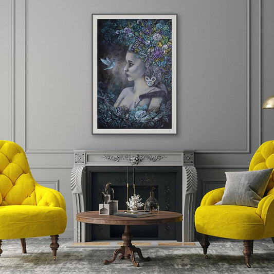 Steampunk Art Print, Illustrated Fairy, Flowers and Fish