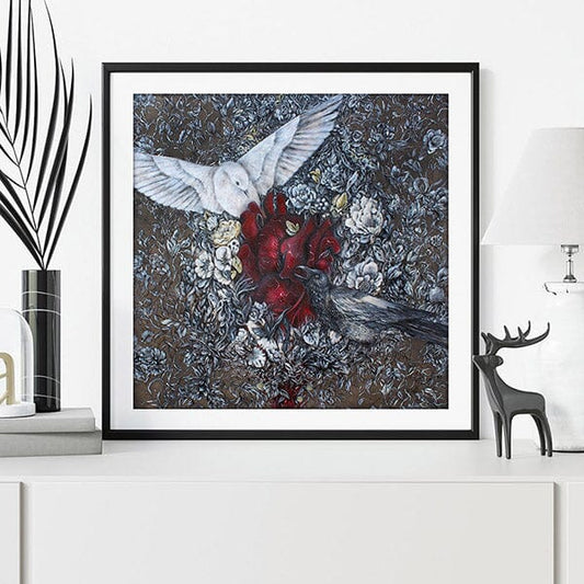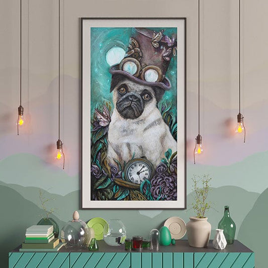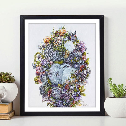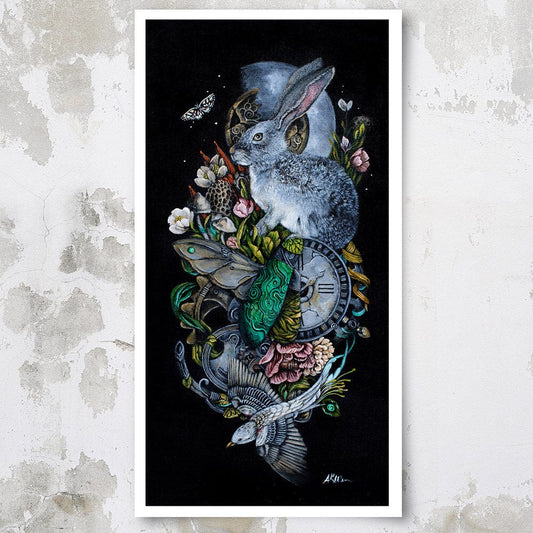 Steampunk Art Print Bunny Rabbit, Bird and Flowers