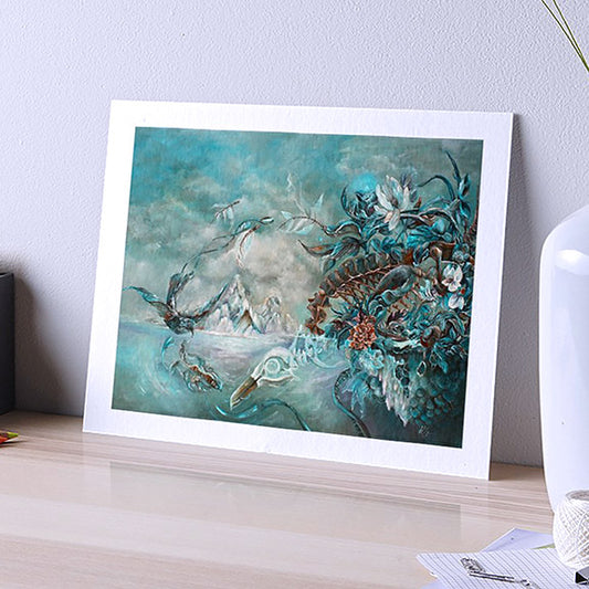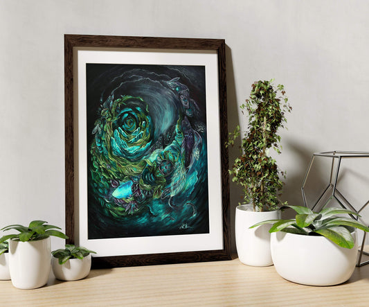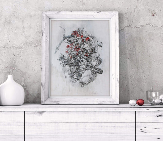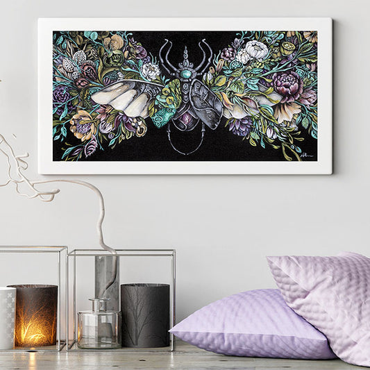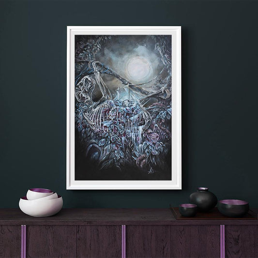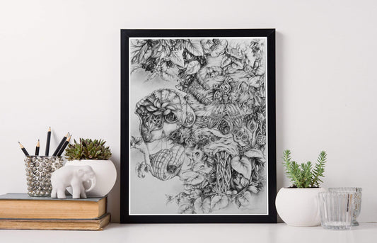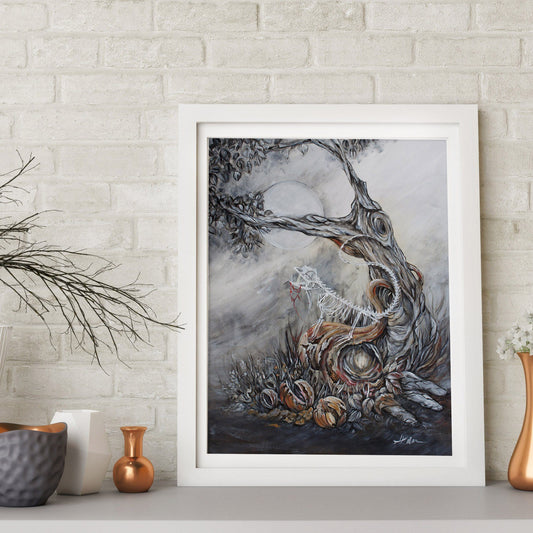 Steampunk Art Print, Skeleton with Flowers and Mushrooms