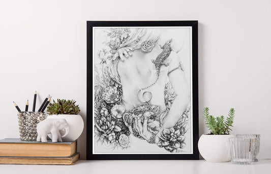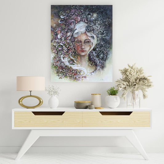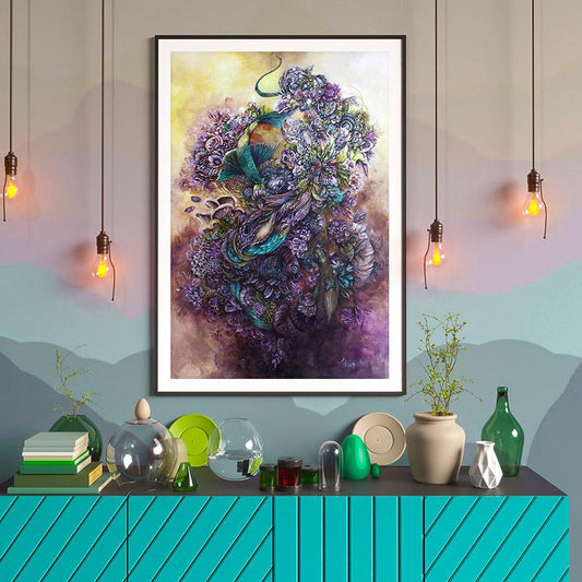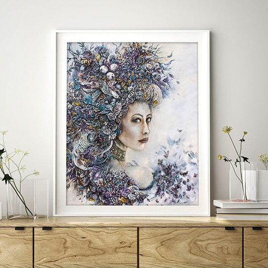 Steampunk Illustration Woman with Flowers Fine Art Print