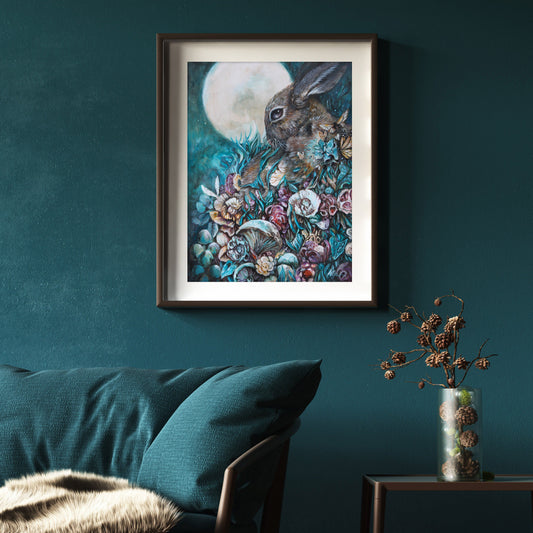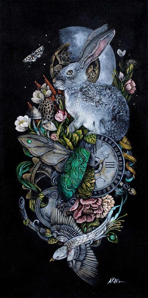 Whimsical Bunny Rabbit Original Acrylic Painting on Canvas