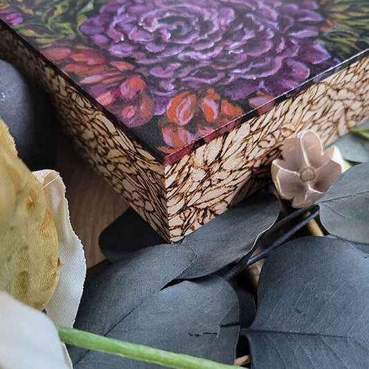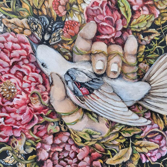 Wood Burning & Original Acrylic Painting of Bird, Hand and Flowers