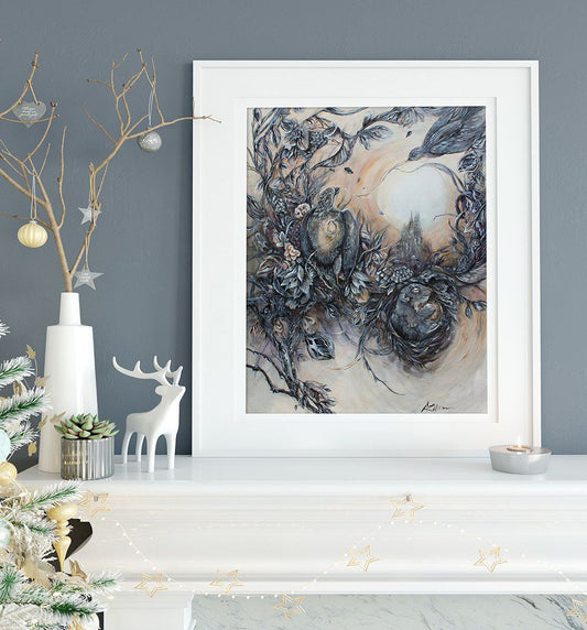 Winter Wonderland Squirrel in Winter Fantasy Art Print