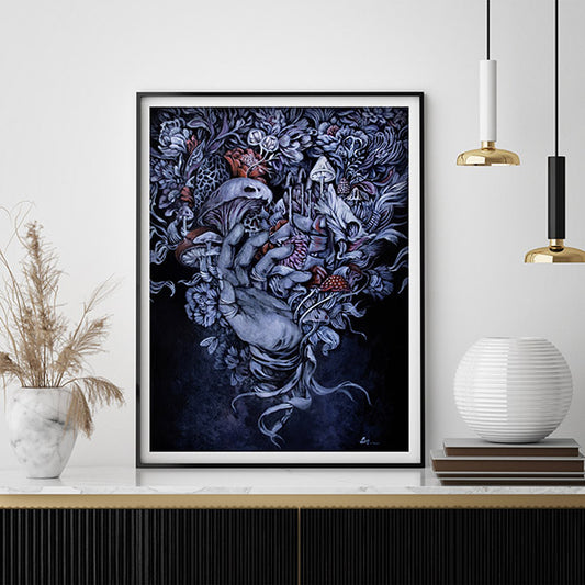 Steampunk Art Print, Skeleton with Flowers and Mushrooms