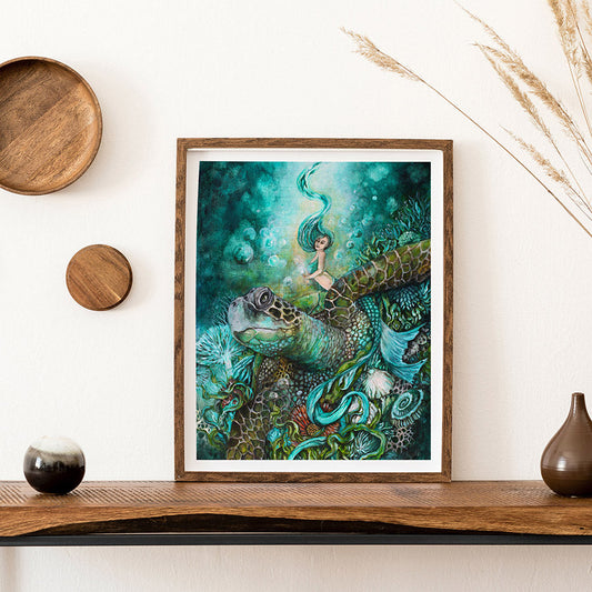 Steampunk Art Print, Illustrated Fairy, Flowers and Fish