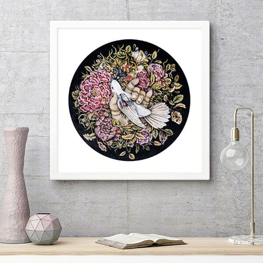 Steampunk Illustration Woman with Flowers Fine Art Print