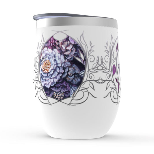 Stemless Insulated Wine Tumbler - Monogram Purple Flowers